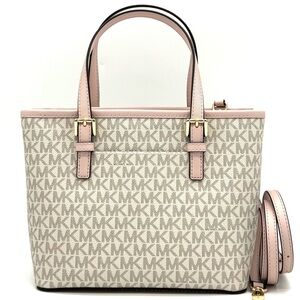 Michael Kors Jet Set Travel Extra-Small Logo Top-Zip lote Bag Powder Blush Multi