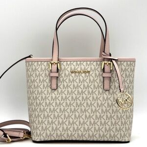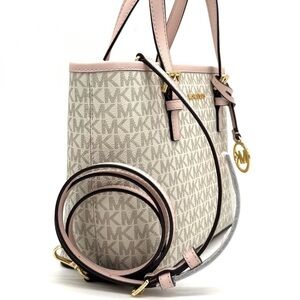 Michael Kors Jet Set Travel Extra-Small Logo Top-Zip lote Bag Powder Blush Multi