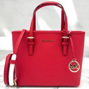 Michael Kors Jet Set Travel Extra-Small Top Zip Tote Bag Red