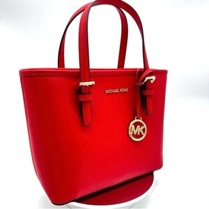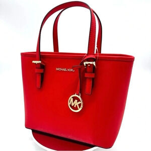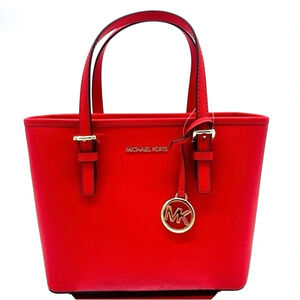 Michael Kors Jet Set Travel Extra-Small Top Zip Tote Bag Red/Gold
