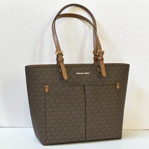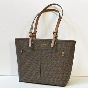 Michael Kors Jet Set Travel Front Double Pocket Shoulder Tote Bag MK Brown