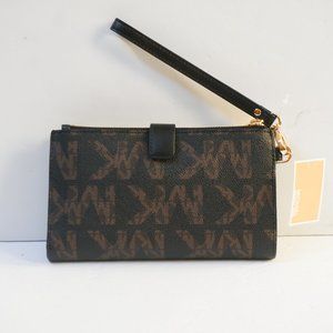 Michael Kors Jet Set Travel Graphic Logo Double Zip Wristlet MK Brown Black