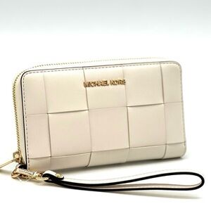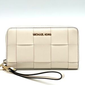 Michael Kors Jet Set Travel LG Flat MF Phone Case Wallet Light Cream