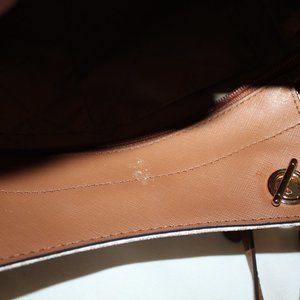 Michael Kors Jet Set Travel Large Chain Shoulder Tote white and Camel MK logo