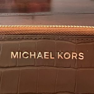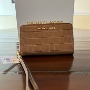 Michael Kors Jet Set Travel Large Continental Wallet Wristlet MK Brown