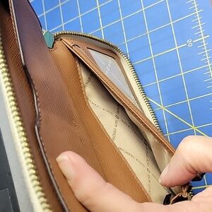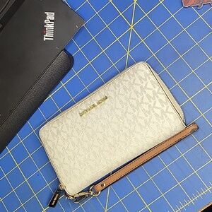 Michael Kors Jet Set Travel Large Continental Wallet Wristlet MK Vanilla Brown