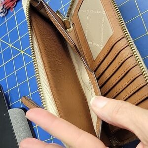 This wallet was definitely enjoyed it is preloved. Structurally sound. Zippers work smoothly on the outside & inside pocket.