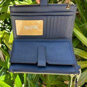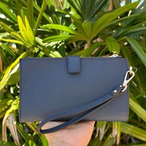 Michael Kors Jet Set Travel Large Double Zip Phone Wallet MK Navy