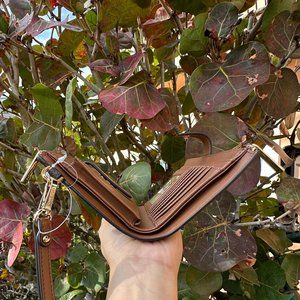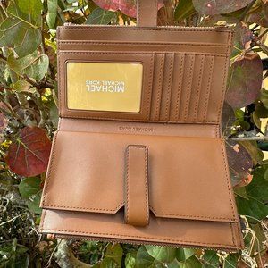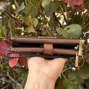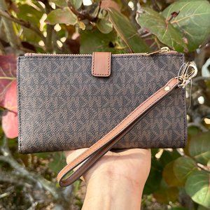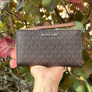 Michael Kors Jet Set Travel Large Double Zip Phone Wallet Wristlet MK Brown