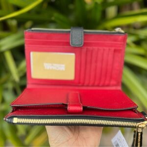 Michael Kors Jet Set Travel Large Double Zip Wallet MK Black Rose