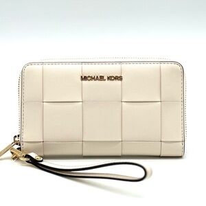 Michael Kors Jet Set Travel Large Flat MF Phone Case Wallet Light Cream (NWT)