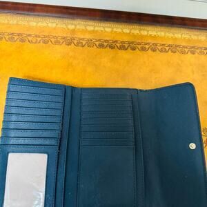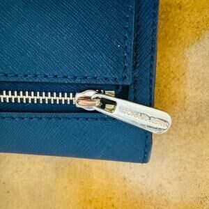 Michael Kors Jet Set Travel Large Leather Trifold Navy Blue Wallet
