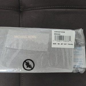 Michael Kors Jet Set Travel Large Logo Quarter-Zip Wallet BROWN