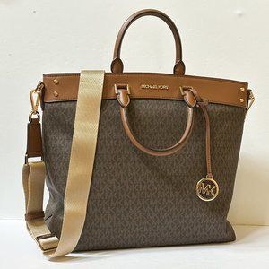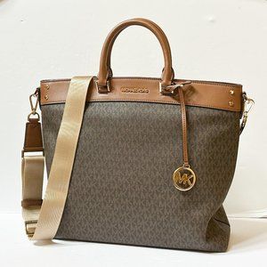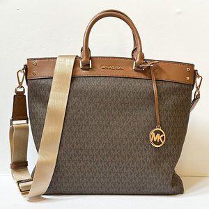 Michael Kors Jet Set Travel Large North South Tote Satchel Shoulder Bag MK Brown