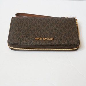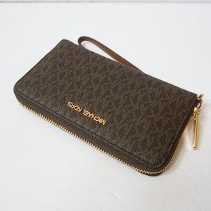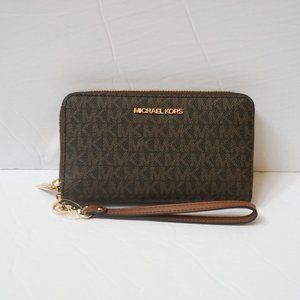 Michael Kors Jet Set Travel Large Phone Case Wallet Wristlet MK Brown