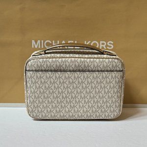 Michael Kors Jet Set Travel Large Toiletry Vanity Case Travel Pouch MK Vanilla
