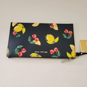 Michael Kors Jet Set Travel Large Top Zip Wristlet Clutch Navy Fruit Handbag
