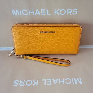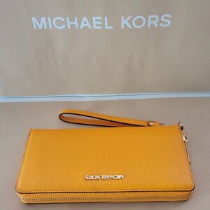 Michael Kors Jet Set Travel Large Travel Continental Wallet Pop Orange Leather