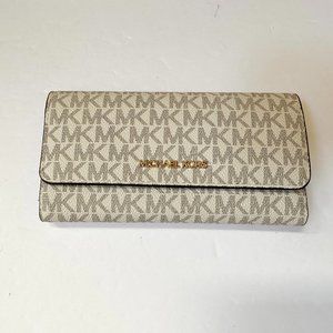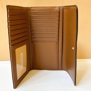 Michael Kors Jet Set Travel Large Trifold Wallet MK Signature Vanilla Brown