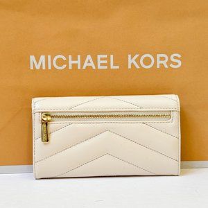 Michael Kors Jet Set Travel Large Trifold Wallet Quilted Stripe Light Cream