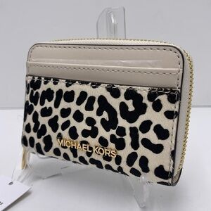 Stylish and compact, this Michael Kors card holder features a chic black and cream design. Perfect for organizing your essentials with elegance.