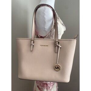 Excellent condition MK Jet Set bag in soft blush pink with gold accents. Original care instruction included. See pictures for measurements. A few minor marks on the front pictured.