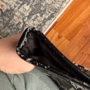 Wear is visible around the trim on top and a small spot on the bottom of the bag.