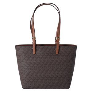 Michael Kors Jet Set Travel Medium Double Pocket Tote Vegan Leather Brown MK