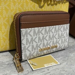 Michael Kors Jet Set Travel Medium Logo Zip-Around Card Case Coin Pouch Vanilla