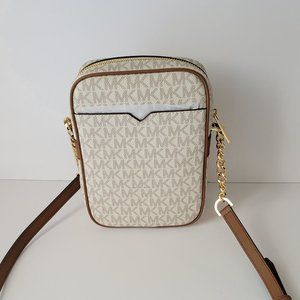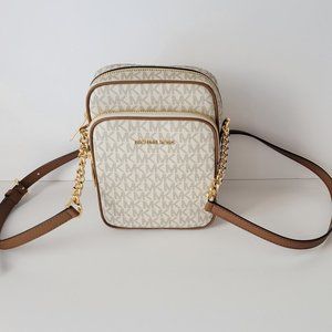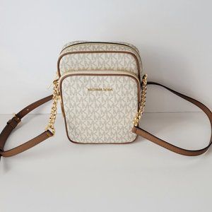 Michael Kors Jet Set Travel Medium NS Chain Crossbody MK Logo Vanilla