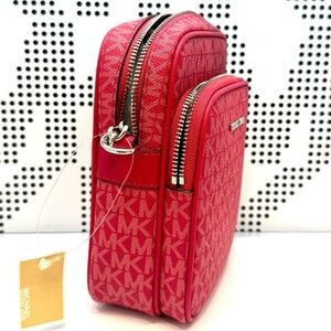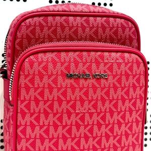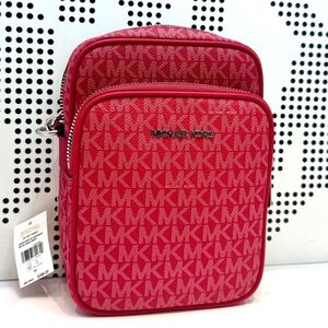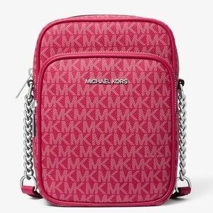 Michael Kors Jet Set Travel Medium Signature Logo Crossbody Bag Dark Raspberry