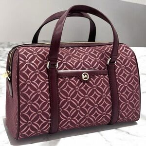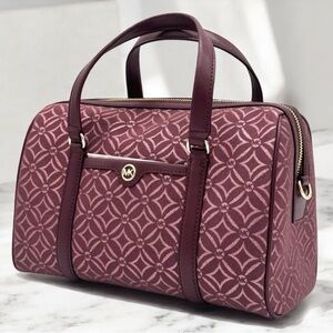 Michael Kors Jet Set Travel Medium Signature Logo Duffel Crossbody Bag Ox Blood