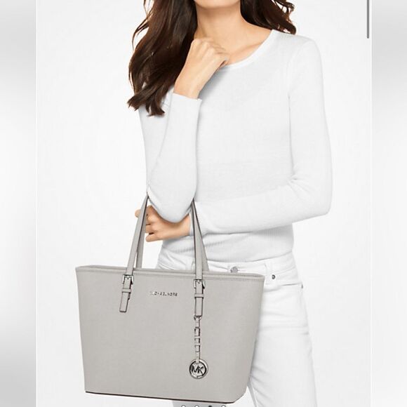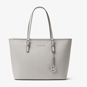 Michael Kors Jet Set Travel Saffiano Leather Top-Zip Tote Bag Gray