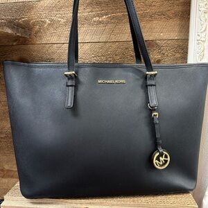#MichaelKors #MKBag #JetSetTote #LeatherTote #DesignerBag #BlackBag #EverydayStyle #PoshStyle #ToteBag #SaffianoLeather