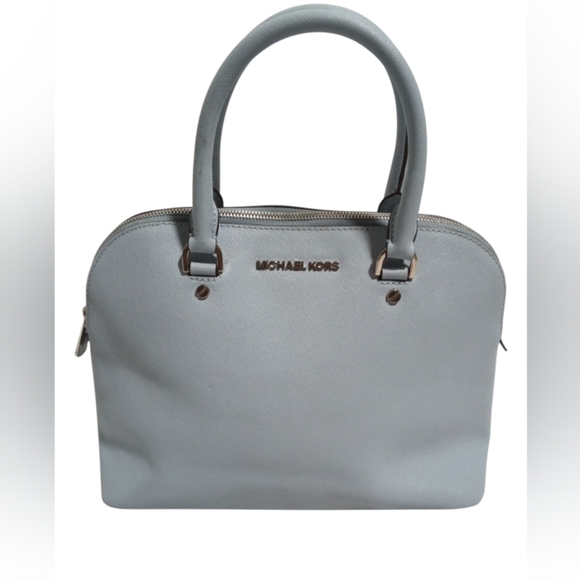 Michael Kors Jet Set Travel Saffiano Leather Tote Handbag Light Blue Structured