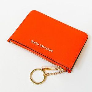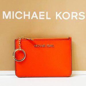 Michael Kors Jet Set Travel Small Coin Pouch ID Key Holder Wallet Poppy