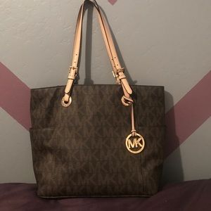 Authentic, lightly used. No scuffs on bag or handles, light pen makes inside.
