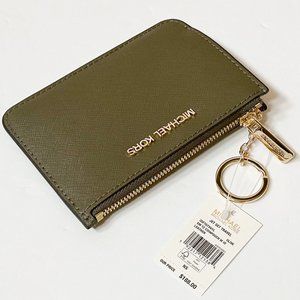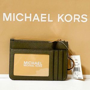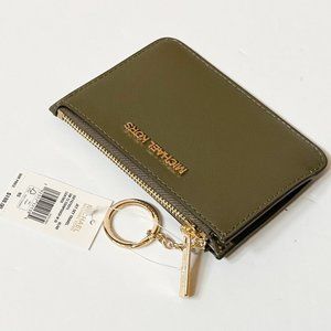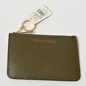 Michael Kors Jet Set Travel Small Top Zip Coin Pouch ID Key Holder Wallet Olive