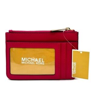 Michael Kors Jet Set Travel Small Top Zip Coin Pouch w ID Holder Electric Pink