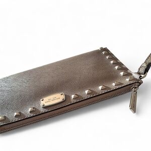 β¨ Michael Kors wristlet, studded clutch, saffiano leather, Jet Set Travel, gray taupe bag, edgy glam, Y2K studded purse, MK wallet clutch