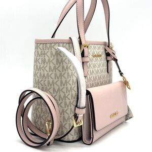 Michael Kors Jet Set Travel Top-Zip Tote Bag & Trifold Wallet Powder Blush Set
