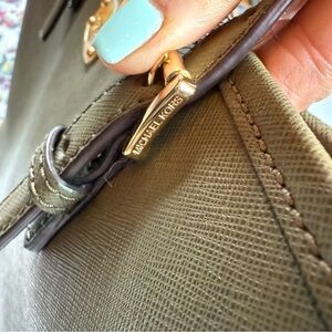 Chic and functional, this Michael Kors Jet Set Travel Tote is perfect for everyday use or travel. Crafted in durable Saffiano leather, it features a sleek olive green finish that adds a touch of understated elegance to any outfit. Use it as a carry on bag, a baby bag, crafts, books or just your everyday, carry the whole world tote!