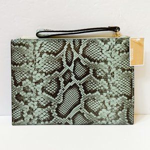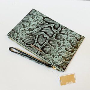 Michael Kors Jet Set Travel XL Clutch Wristlet Embossed Leather Pale Jade Multi