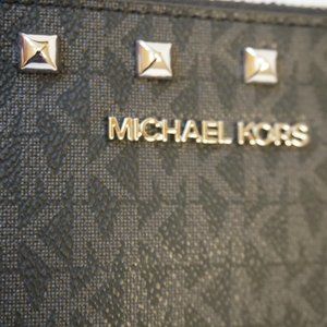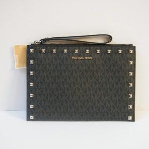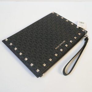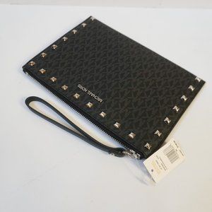 Michael Kors Jet Set Travel XL Wristlet Clutch MK Black/Silver Tone Studs
