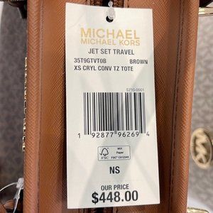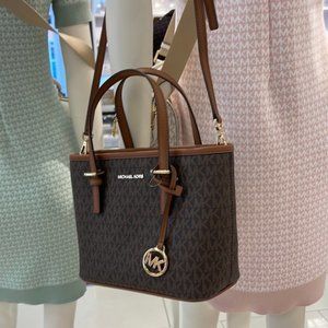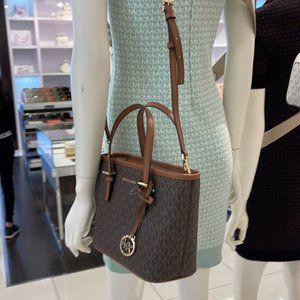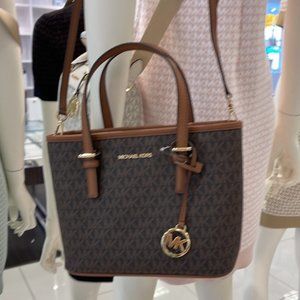 Michael Kors Jet Set Travel XS Carryall Tote Top Zip Tote Brown