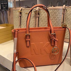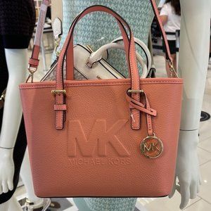 Michael Kors Jet Set Travel XS Embossed Pebbled Leather Tote Bag Sherbert