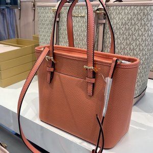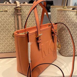 Michael Kors Jet Set Travel XS Embossed Pebbled Leather Tote Bag Sherbert