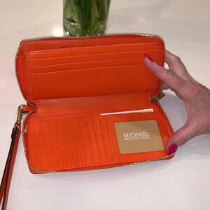 Michael Kors Jet Set Travel wallet Poppy orange color NWT gorgeous wallet