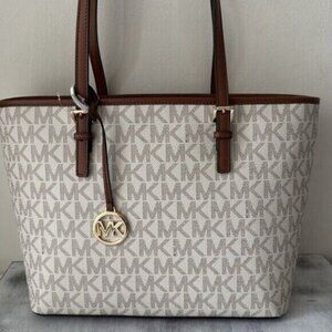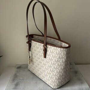 Michael Kors Jet Set Vanilla Luggage Tote Carry All Shoulder Handbag Logo Charm