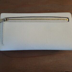 Interior has 8 slip pockets & 1 zip pocket. Interior has 1 ink stain